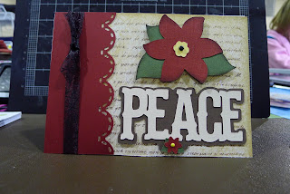 At the Scrapfest we had a young lady working on a school project and asked us ladies to make a Christmas card for our military. Of course, everyone wanted to participated. Well I didn't have one piece of paper or sentiment for Christmas with me. But, I did have my Gypsy loaded with some Christmas cartridges. I came up with this and think it looks great.